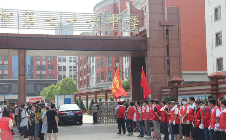 建设公司党员、志愿者在郑州市第76中学门口待命